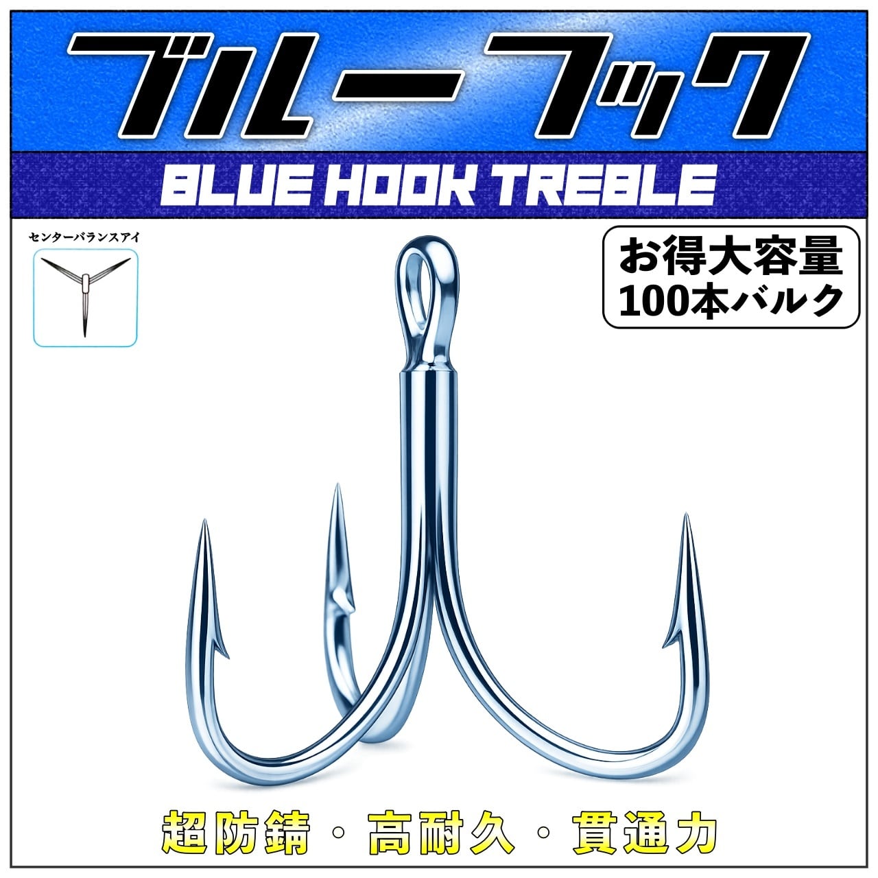 超防錆ブルーフック【100本バルク】|ソルト対応高耐久トレブルフック